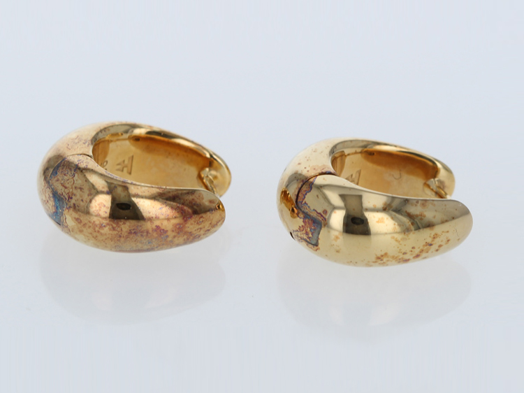 修理プロセスは、まずピアスの現状を詳細に分析することから始まります。この段階では、ピアスの全体的な状態と、メッキの剥がれ具合を慎重に調査します。次に、新品仕上げの工程を行い、表面の傷や汚れを取り除きます。最終的に、22Kイエローゴールドを使用したメッキ加工を施し、耐久性と美観を高めます。このメッキは、通常のメッキよりも厚みがあり、長期間の使用に耐えることができます。
